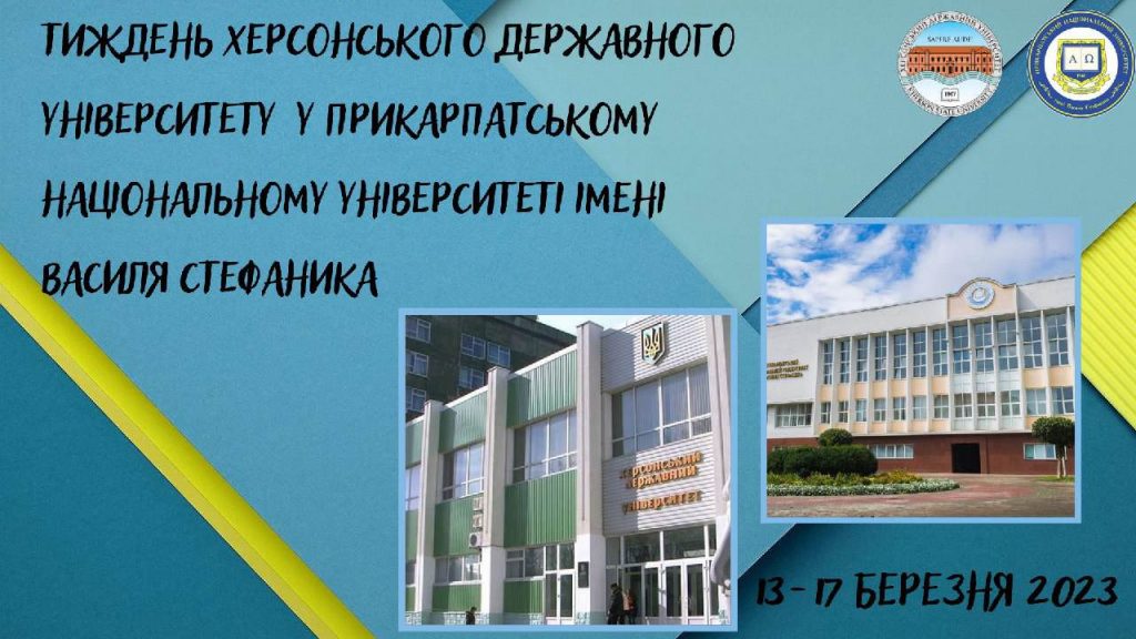Упродовж 13-17 березня 2023 року у Прикарпатському національному університеті імені Василя Стефаника відбудеться Тиждень Херсонського державного університету у зв’язку з річницею переміщення ХДУ на базу ПНУ на час воєнного стану в Україні. Заходи Тижня Херсонського державного університету в Прикарпатському університеті: Читати далі
