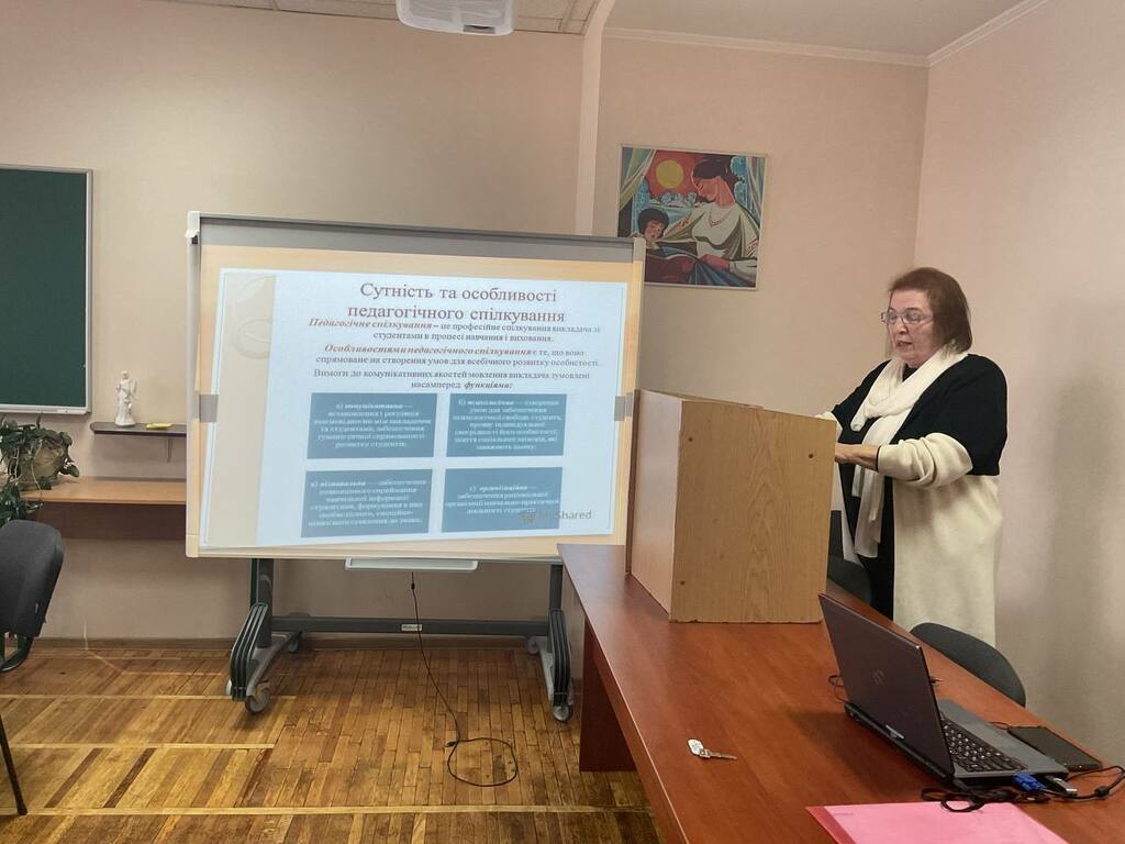 Віра Миколаївна наголосила, що реформування вищої освіти розширило поле взаємодії викладача й студентів і українська громадськість стає більш чутливою до етичної проблематики, особливо в освіті. Педагогічна діяльність вимагає налагодження педагогічного спілкування, безпосередніх контактів викладача зі студентами. Регулює таку взаємодію педагогічна етика – наука, що визначає сутність морально-психологічної сторони діяльності викладача закладу вищої освіти. Під час навчання студент має одержати не просту суму знань, умінь і навичок, а у нього повинна сформуватися компетентність, як загальна здатність, заснована на знаннях, досвіді, цінностях, здібностях, набутих як завдяки навчанню, так й спілкуванню з педагогами.