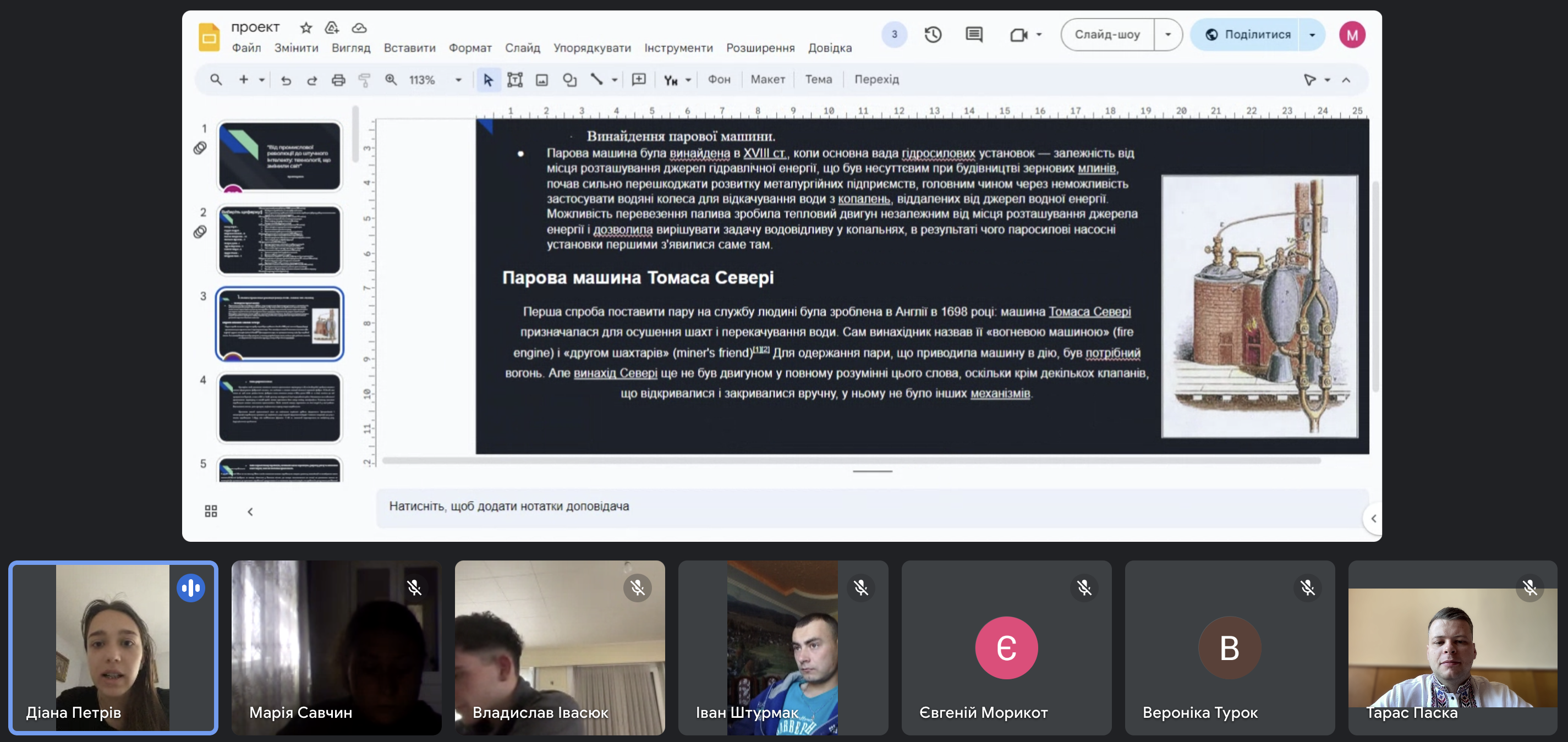 Здобувачі освіти продемонстрували свої знання та вміння, досліджуючи ключові технологічні досягнення, що змінили хід історії. Проєкт складався з кількох етапів, кожен з яких був присвячений окремому періоду та важливим відкриттям: від парових машин та електрифікації до сучасних досягнень у галузі штучного інтелекту та автоматизації. Студенти провели ретельний аналіз впливу цих технологій на освіту, суспільство, економіку та культуру.