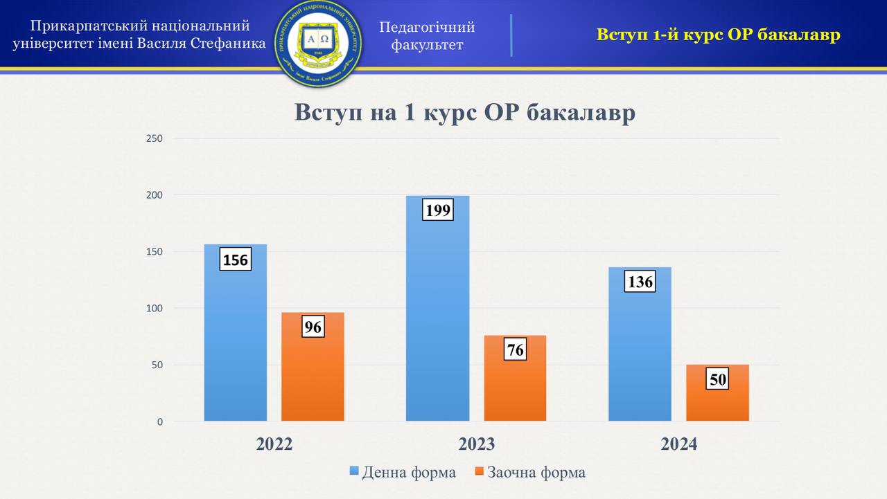 Відповідальний секретар відбіркової комісії педагогічного факультету, асистент кафедри педагогіки та освітнього менеджменту імені Богдана Ступарика Тарас Паска розповів про особливості цьогорічної вступної кампанії, ключовими результатами, досягненнями та труднощами. Проаналізовано кількість вступників у розрізі спеціальностей факультету та у порівнянні зі статистичними даними минулих років. Відповідальний секретар Педагогічного факультету зазначив, що незважаючи на певні виклики, успішно набрано студентів на ОР бакалавр і завершується набір студентів на ОР магістр. Було докладено максимум зусиль для того щоб абітурієнти вступили на спеціальності саме нашого факультету.